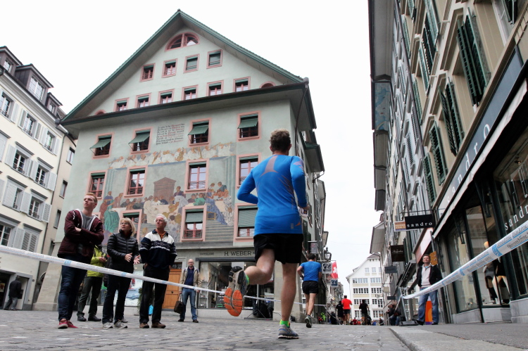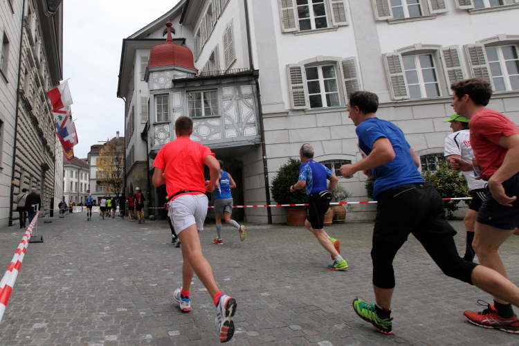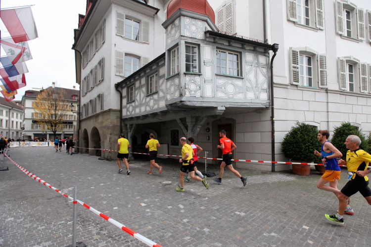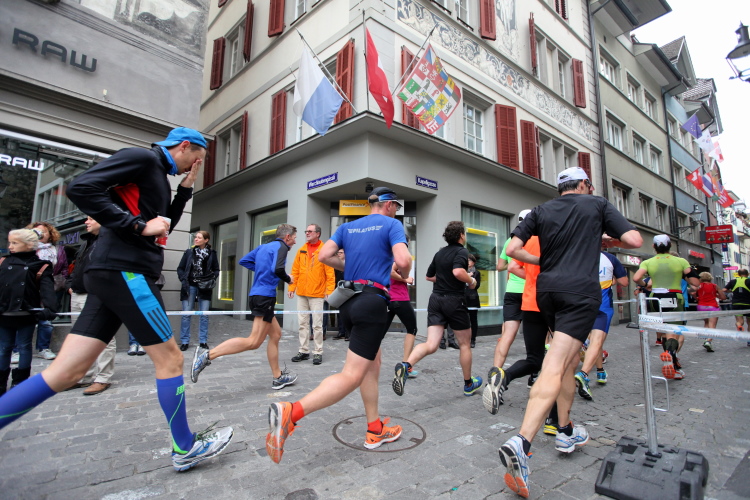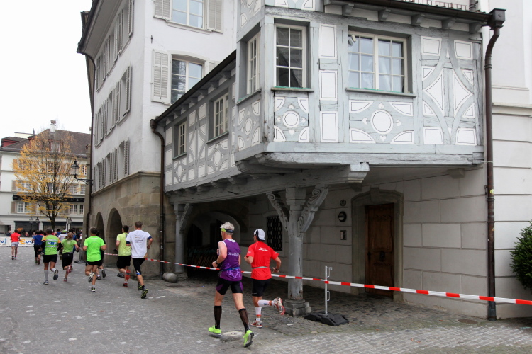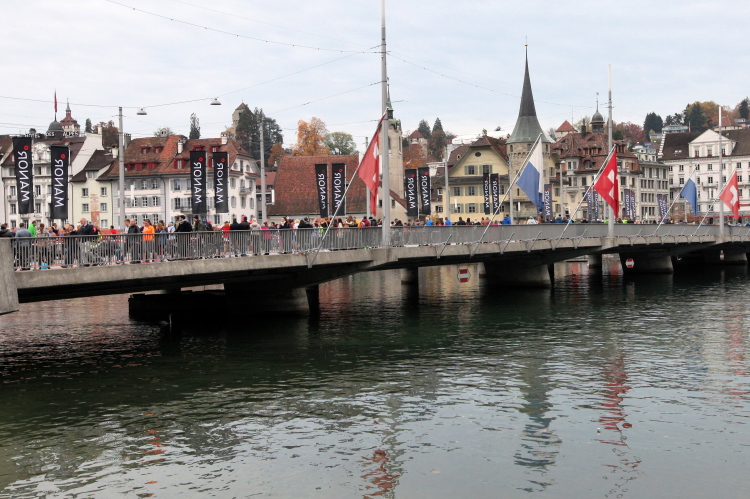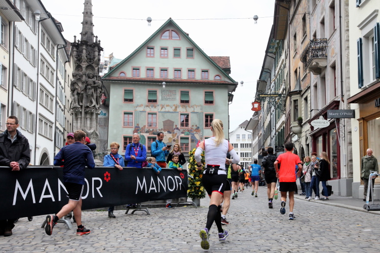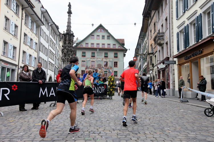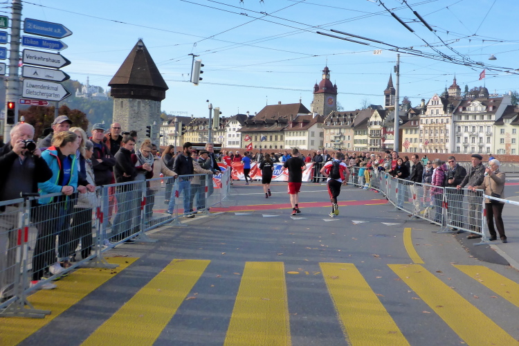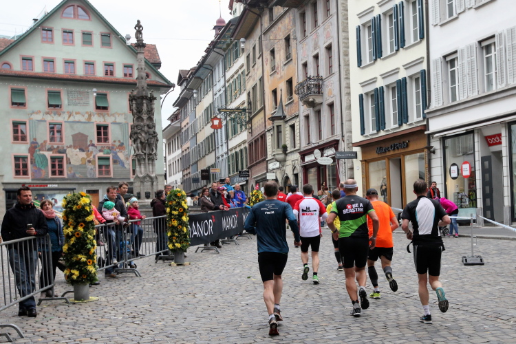 Die Zuschauer sind unglaublich. Ist denn hier keiner müde? Auch sie fischen sich die Marathonläufer heraus, um sie namentlich anzufeuern. Das puscht mich nach vorne. Der Reusssteg liegt in der Sonne. Schnell haben wir die Altstadt hinter uns.