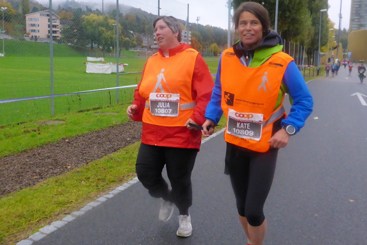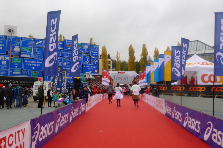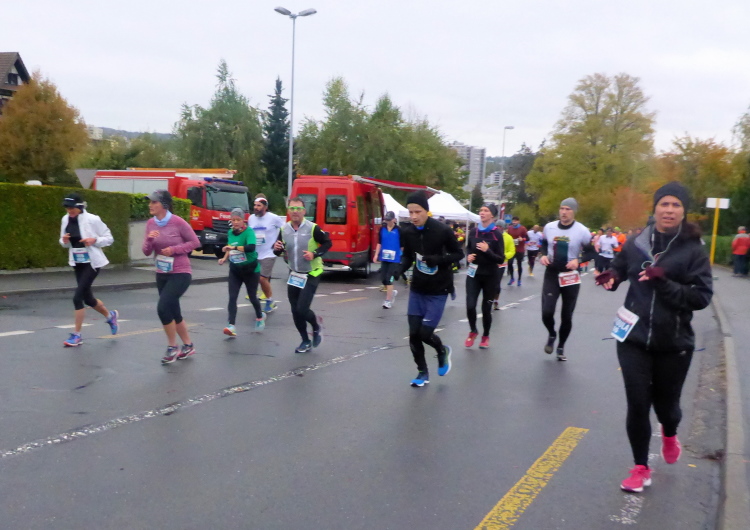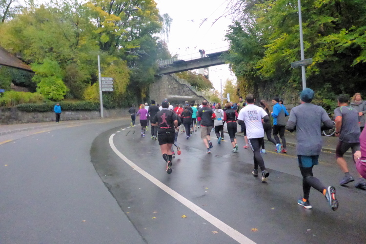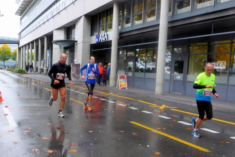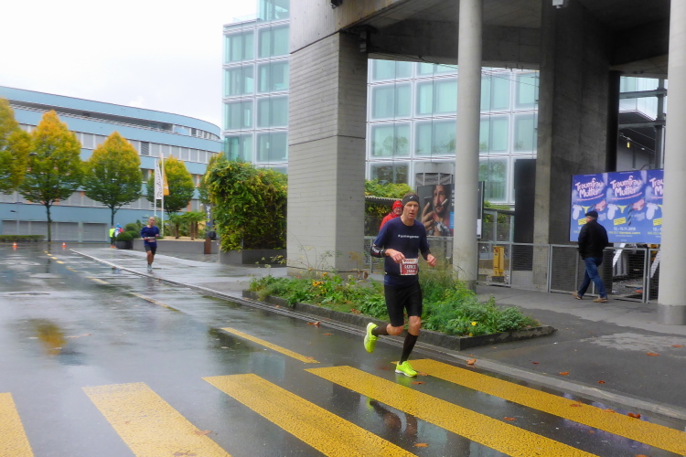 Nun geht es auf die zweite Runde. Die entgegenkommenden Marathon- und Halbmarathonläufer und die scheinbar immer noch nicht müden Guggenmusiker machen die Strecke bis zum Schwanenplatz kurzweilig. Ab der großen breiten Brücke wird es dann aber wesentlich ruhiger. Der Regen hat aufgehört. Ich sehe vereinzelte Läufer vor mir, hinter mir sind aber auch welche. Natürlich sind auch noch Zuschauer an der Strecke. Es sind unentwegte Marathonenthusiasten, die die Namen der Läufer von der Startnummer ablesen und jeden einzelnen persönlich anfeuern. Das motiviert ungemein.