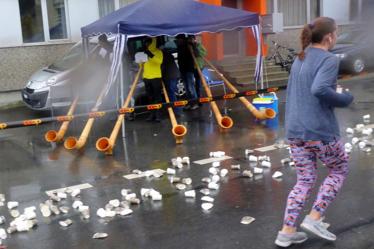 Im Augenwinkel kann ich bereits die nächsten Alphornbläser in einem überdachten Hauseingang stehen sehen. Ihr Spiel ist natürlich nicht zu überhören. Ist das für die Halbmarathonläufer nicht das perfekte Ambiente, um die letzten zwei Kilometer in Angriff zu nehmen?