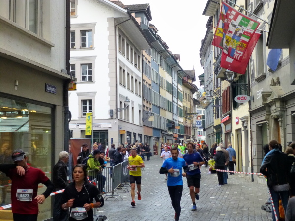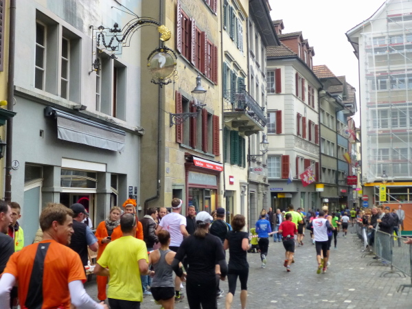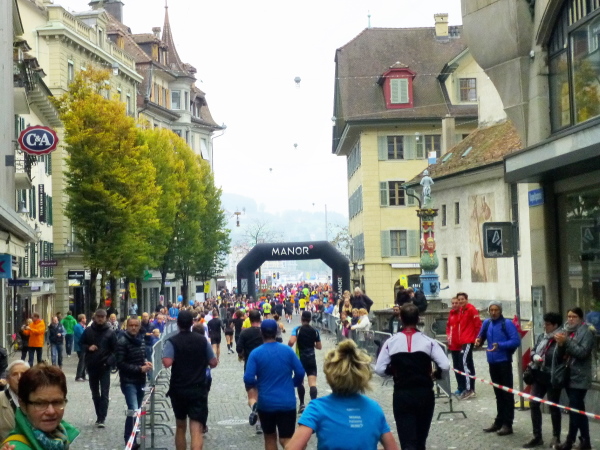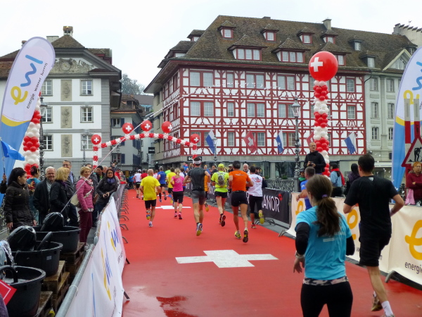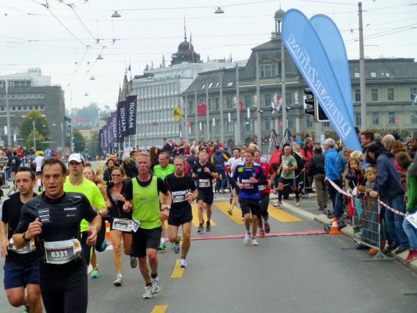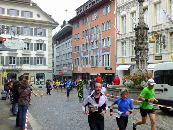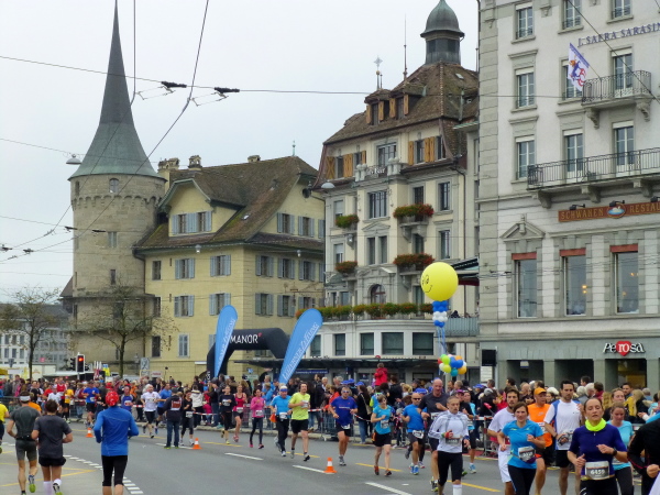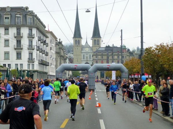 In meinem Bericht von 2008 hatte ich geschrieben: Die Kilometer 19 bis 23 in Luzern sind unvergleichlich und mit Sicherheit ein Grund, allein deswegen hier einmal dabei zu sein. 2014 muss ich diese Aussage korrigieren: Denn diese Kilometer sind …. noch unvergleichlicher geworden. Germanisten mögen mir diesen sprachlich unkorrekten Komparativ nachsehen. Aber wie soll ich es anders ausdrücken? Mit dem Durchlaufen des KKL und der historischen Altstadt hat es der Veranstalter tatsächlich geschafft, die Attraktivität dieses Abschnitt nochmals zu steigern. Und wie damals scheint die Innenstadt förmlich Kopf zu stehen, verwandeln die vielen Tausend Zuschauer die Strecke in einen wahren Hexenkessel. Man wird den Eindruck nicht los: Die Luzerner sind verrückt nach Marathon. Und die Läufer danken es Ihnen, indem sie in immer größeren Scharen nach Luzern strömen. Fast 11.000 auf allen angebotenen Distanzen sind es in diesem Jahr. Und das in einer Stadt mit gerade einmal 80.000 Einwohnern.