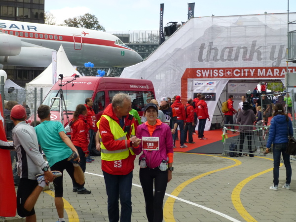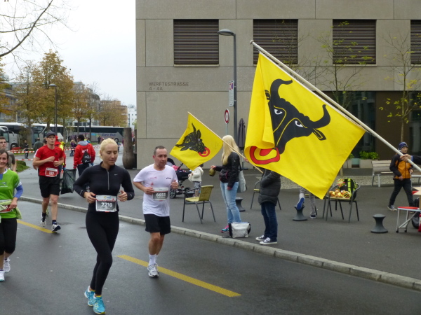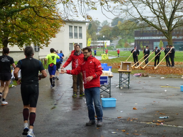 In Horw werden wir schnell ins Leben zurück geholt. Gefeiert wird hier noch immer. Kein Wunder: Der Start des 5 Mile Run rückt näher. Deren Teilnehmer werden später das Feld der verbleibenden Marathonläufer von hinten aufrollen. Ein kluger Schachzug: Denn sie sorgen dafür, dass die langsameren Marathonis auf dem Weg ins gemeinsame Ziel im Verkehrshaus nicht vereinsamen.