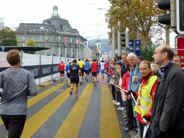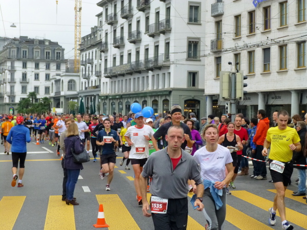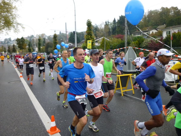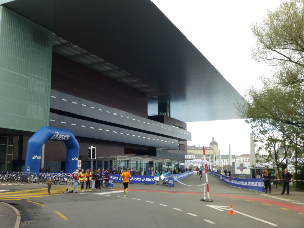 Über den bereits wohlbekannten Schweizerhofquai und die Haldenstraße geht es direkt dem Ausgangspunkt unserer läuferischen Luzern-Reise am Verkehrshaus entgegen. Für Stimmung und Trubel entlang der Strecke sorgen jetzt nicht mehr nur die weiterhin omnipräsenten Zuschauer, sondern auch die uns auf der mit Kegeln abgetrennten Gegenspur entgegen kommenden Läufer: Es sind die schnelleren Marathonis auf dem Weg zur zweiten Runde.