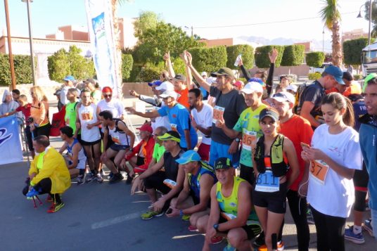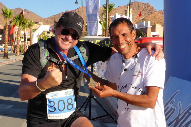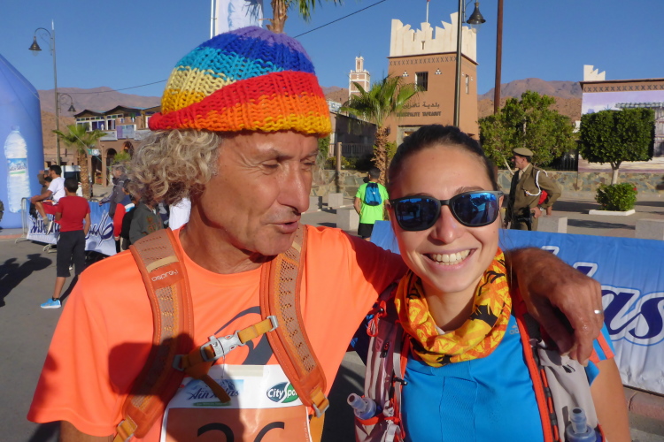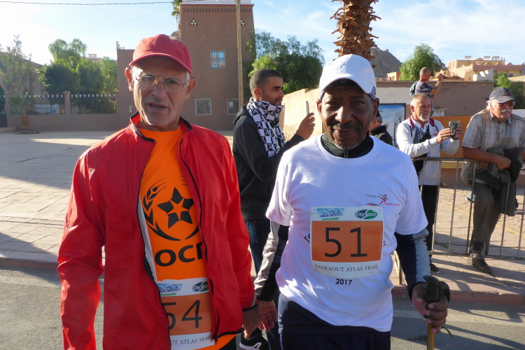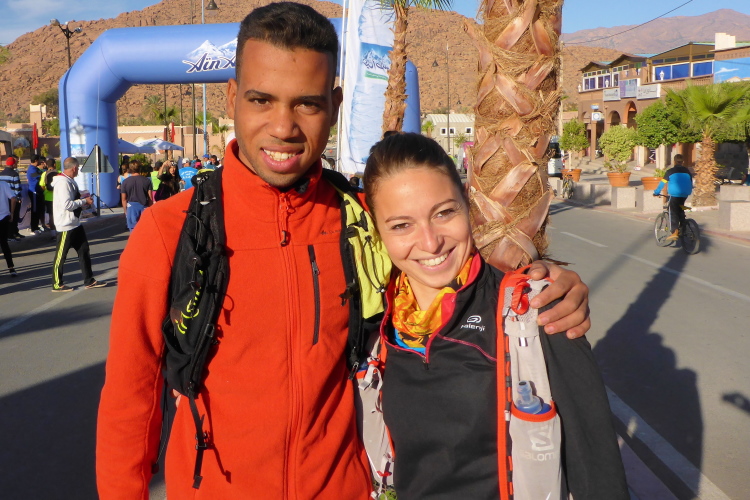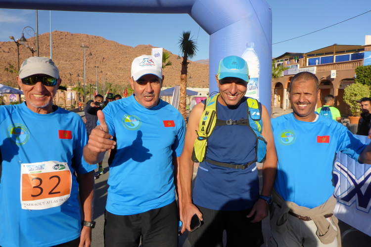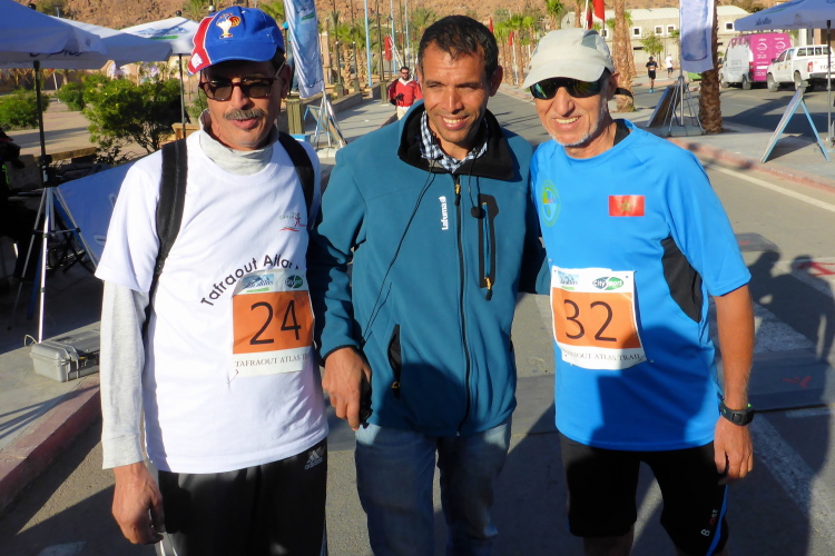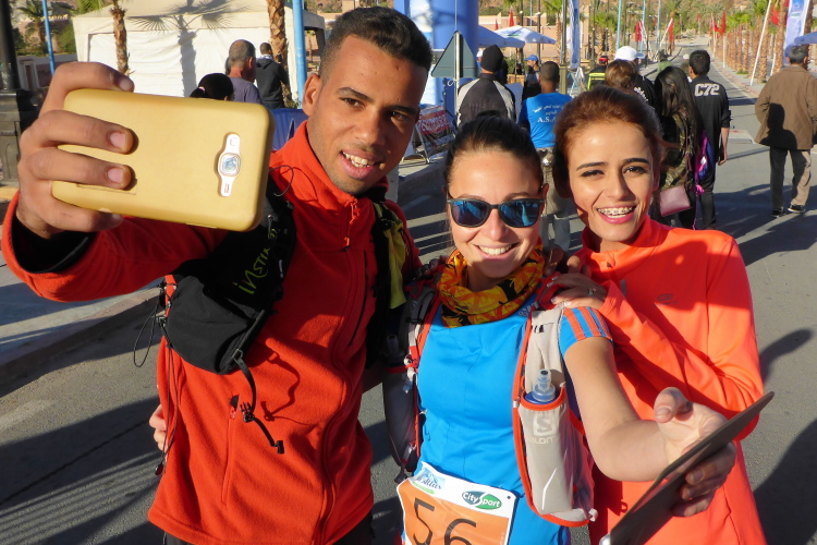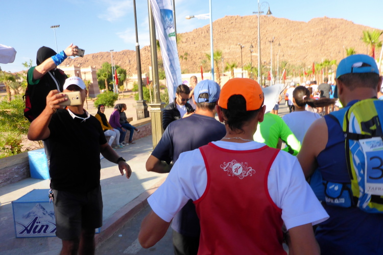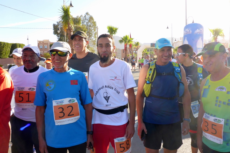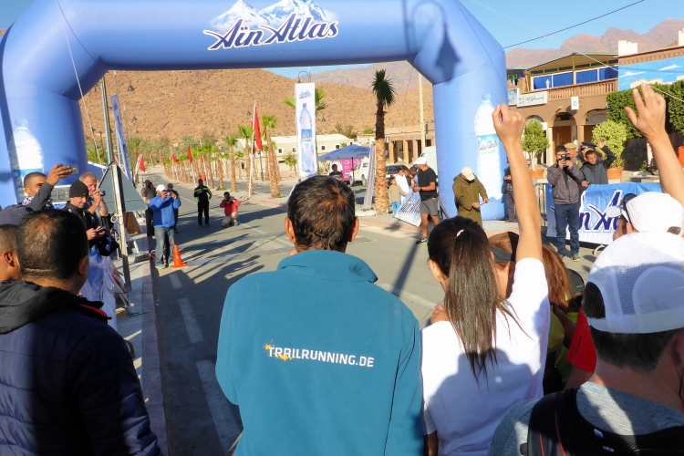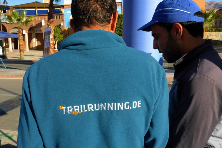 Traditionell findet der Tafraout Atlas Trail am marokkanischen Unabhängigkeitstag statt. Es ist Samstag, ich bin mir 100%ig sicher, dass ich heute bester Deutscher auf der Ultrastrecke sein werde. Die meisten Läufer, auch die der 29 Kilometer-Strecke, sind mir bekannt. Wie in Deutschland gibt es immer dieselben Verdächtigen. Das obligatorische Vor-dem-Lauf-Posing ist aber extremer. Lahcen, der Champion, hat dabei mehr Geduld, als ich. Der 10fache Seriengewinner des Marathon des Sables muss viel für Selfies herhalten. Stolz trägt er die trailrunning.de Jacke, aus der ich seltsamerweise rausgewachsen bin.