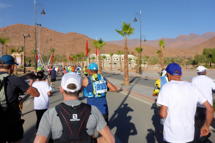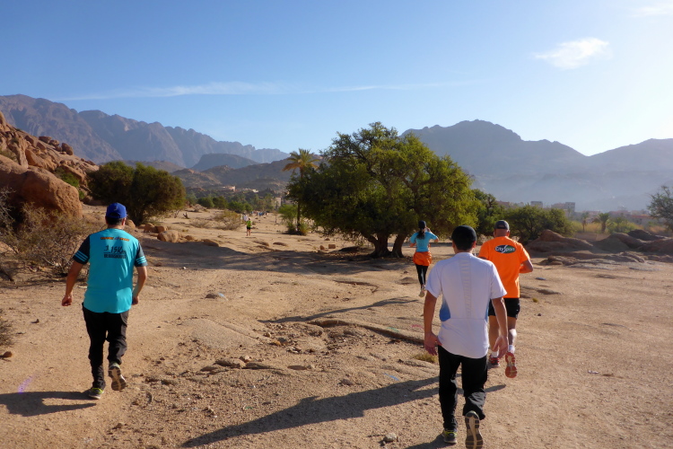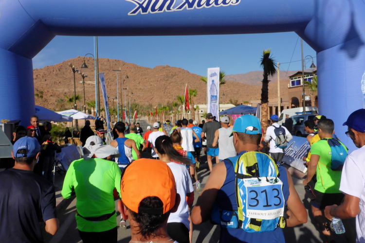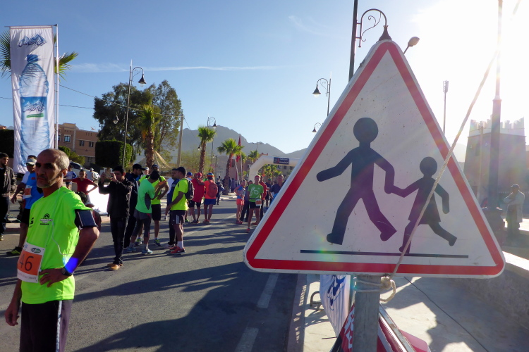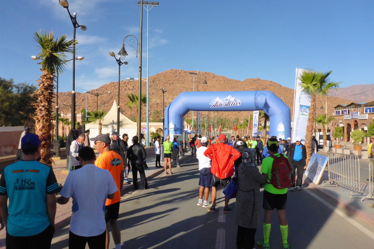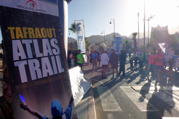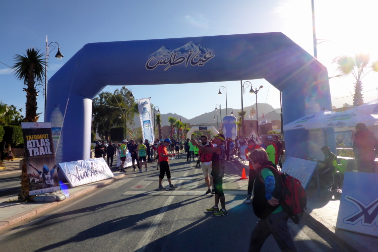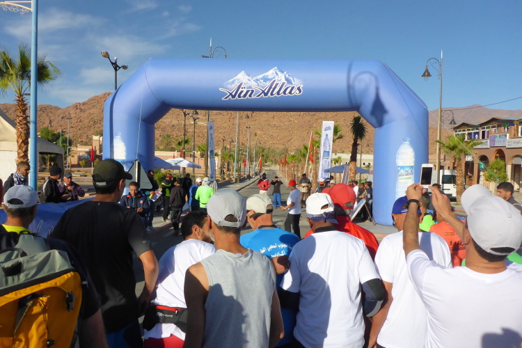 Wir sind dieses Jahr nur klägliche 12 Ultraläufer. Etwa 50 Läufer wollen die 29 Kilometer laufen. Der 10-Kilometer-Spaziergang, bei dem es letztes Jahr noch 300 Teilnehmer gab, fällt aus. Auch die großartigen Abendessen vor und nach dem Lauf, bei denen einst 500 Gäste anwesend waren, fallen aus. Umso dankbarer bin ich Lahcen, dass er sich kurzfristig doch noch entschlossen hat, den traditionellen Tafraout Trail überhaupt zu organisieren.