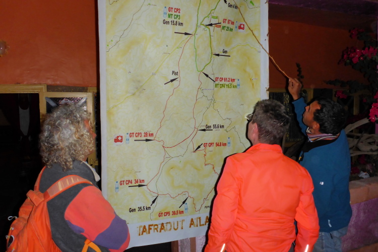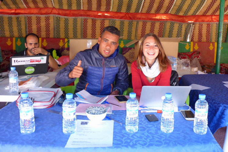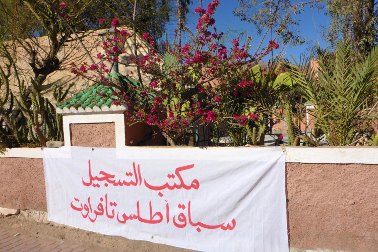 Lahcen Ahansal und sein Orgateam sind nonstop von Zagora nach Tafraout gefahren. So ist bei meiner Ankunft alles vorbereitet, ich kann mich gleich im Zelt am zentralen Platz anmelden. 25 Euro kostet der Ultratrail.