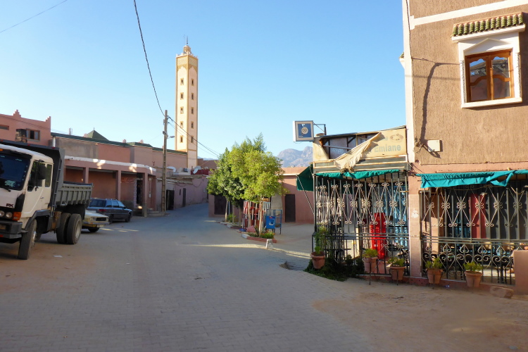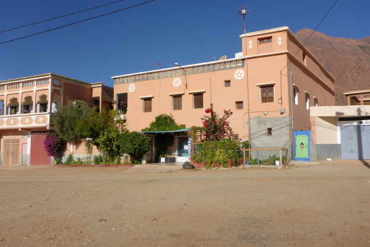 Ein schöner Lauf geht zu Ende. Rechts, vor dem Kreisel winkt eine bayerische Fahne. Harry ist der einzige Deutsche, der in Tafraout lebt: „ Wozu soll ich französisch lernen? Spricht doch eh keiner hier“. Er verleiht gepflegte MTB´s (hier VTT genannt) und bietet preiswerte Übernachtungen.