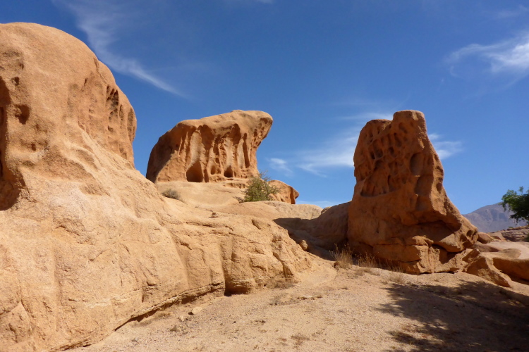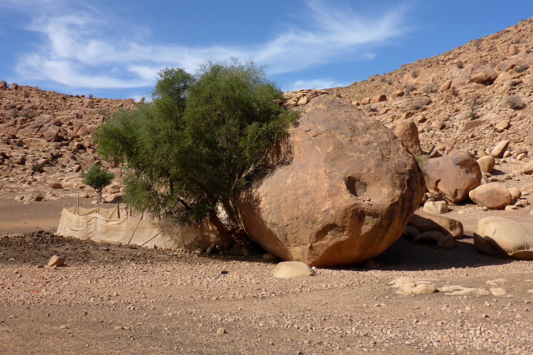 Zügig geht es von Tafraout (1000m ü.M) durch die Kugeln des rosa Granits hinab ins Ammelntal, das wegen seines kulturellen Erbes unter UNSECO Schutz steht. Die Ammeln erfanden die Ölmandelpaste Amlo (daher der Name), die mit Arganöl gemischt wird. „Marrokanisches Nutella“ nennt man diese köstliche Kalorienbombe, die es selten offiziell zu kaufen gibt.