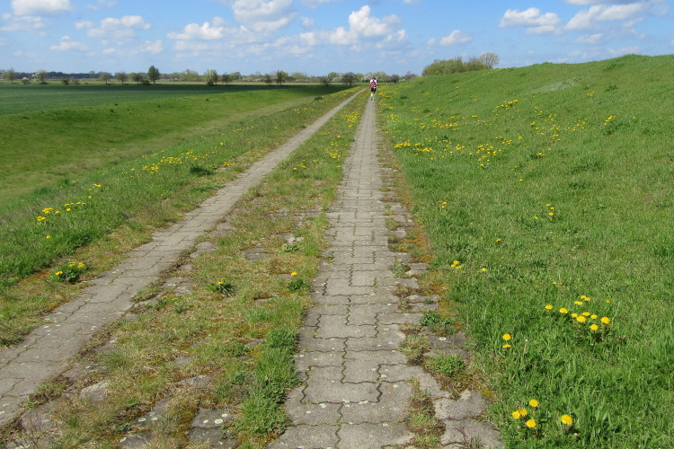 Es ist immer noch diese tolle Strecke durch die Weite der Altmark, durch die Dörfer Buch, Boilsdorf und Schelldorf. Mal auf dem Deich, mal neben dem Deich. Mal mit Wind, mal ohne Wind. Mal mit Regen, mal mit Sonne. Und klar, auf dem zweiten Teil bei fast 20 Grad wieder durch die Streckenteile am Deich, wo die Luft zu stehen scheint.