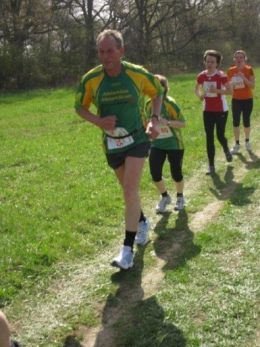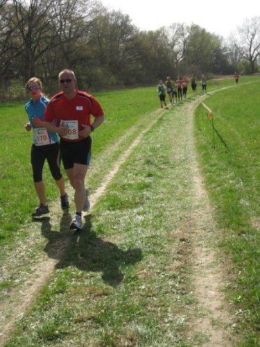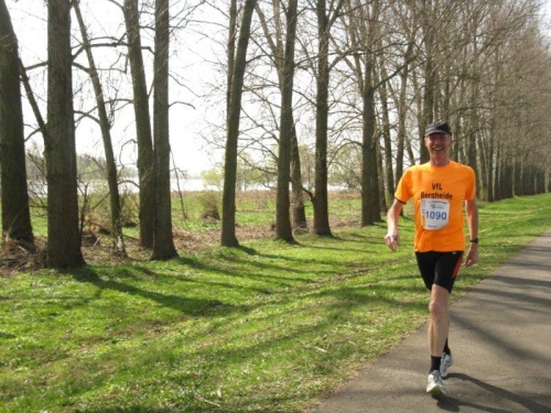 Wieder geht es den Deich hinauf und zwei Läufer der Griebener Elbblitze überholen mich. Aber auch ich habe bereits ein orangefarbenes T-Shirt entdeckt. Das ist doch mein Vereinsfreund Reinhard. Seit 20 Jahren liefern wir uns Laufduelle mit unterschiedlichem Ausgang. Heute habe ich mal wieder die Nase vorne, aber da Reinhard ein Jahr älter ist, wird er sowieso in der M65 gewertet.