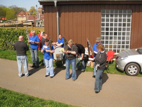 Die Schalmeienkapelle spielt unermüdlich weiter und über die Hafenpromenade geht es durch den Start- und Zielbereich in die zweite Runde. Hier gibt es ein richtiges Bad in der Menge und der Bergheide Fanclub macht sich lautstark bemerkbar. Ich muss mich ein wenig zurückhalten, denn wir wollen ja das Ganze nochmals laufen.