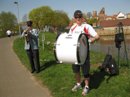 In Buch gibt es das nächste Stimmungsnest und auf dem Weg zum Elbdeich kann ich noch an einigen Läufern vorbeilaufen. 32 Kilometer sind geschafft und ich bin froh, als ich wieder im Schatten des Deiches laufen kann. Der Streckenbelag ist unterschiedlich und wechselt öfters von Asphalt zu Verbundpflaster. Auch Kopfsteinpflaster und Betonplatten trifft man an der Strecke. Da darf man nicht zu sehr ins Träumen kommen.