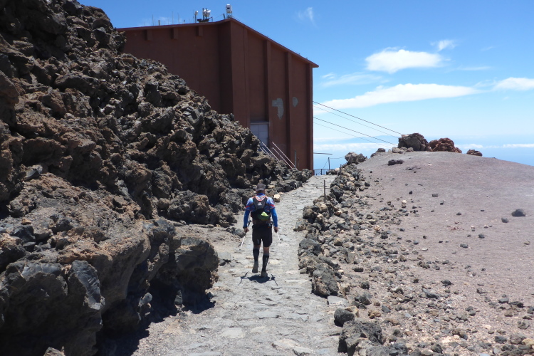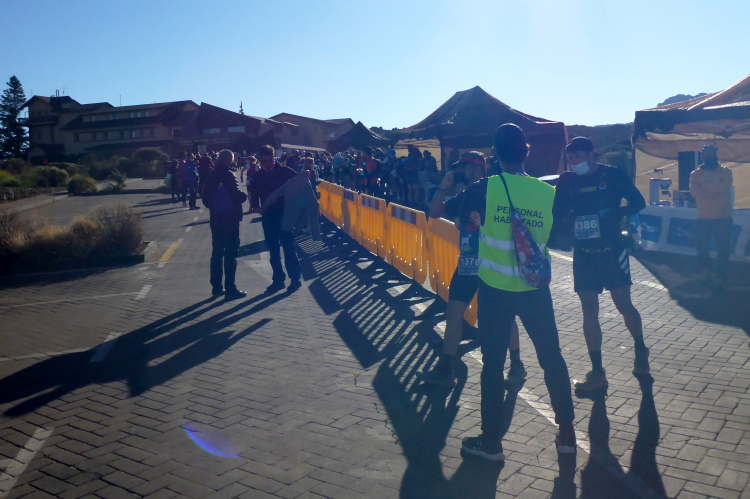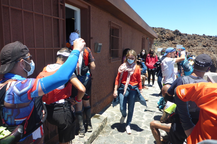 Die letzten 200 Höhenmeter leide ich, aber dann sehe ich den Aussichtspunkt von gestern und weiß, dass es von dort nicht mehr weit ist. Ich habe das Ding im Sack. Vorbei an ein paar Flip-Flop-Touris erreiche ich die Bergstation der Seilbahn und kann sogar die 45 Minuten Vorsprung retten. Ich brauche lange, um etwas Verpflegung zu ergattern. Das Covid Konzept ist streng und in dem Raum, wo es die Verpflegung gibt, liegt - quasi als Warnung - ein Läufer mit Sauerstoff in der Nase. Katja und Burkhard werden es später auch noch auf den Teide schaffen, aber dort ist für die beiden Schluss. Sie haben das Zeitlimit überschritten und werden mit der Bahn hinunter zum Bus gebracht, der sie nach Puerto de la Cruz bringt.