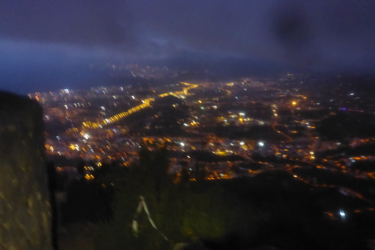 Wir sind jetzt ein Dreiergespann. Ich bin auf zwei Spanier aufgelaufen, die schon öfters hier waren. Gemeinsam ziehen wir nach der Verpflegung los. Mit einem geschrumpften Zeitpuffer geht es auf den vorletzten Abschnitt. Zwei Stunden zwanzig für sieben Kilometer. Das hört sich nicht gut an. Direkt nach der Verpflegung geht es am Fels senkrecht nach oben. 700 Höhenmeter auf 2 Kilometer. Ich frage meine Begleiter was das soll. Es ist reine Quälerei. Immer nur hoch. Stufen, Felsblöcke, Felsblöcke, Stufen. Wenigstens sind wir nicht mehr so hoch Warum macht jemand so was? „It’s Trail“, sagt mein Begleiter und lächelt. Und er hat Recht. Es ist wie es ist. Wenn es hoch geht, geh hoch. Wenn es runter geht, geh runter. Ganz einfach. Immerhin bleiben wir tatsächlich vom Regen verschont. Damit hatte ich nicht gerechnet.