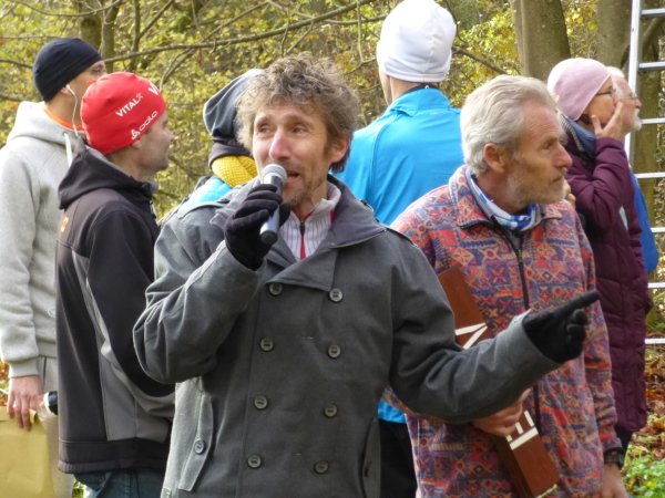 Aus der Ferne dringt ungewohnter Lärm durch die Stille der Natur zu uns durch. Rasch nähern wir uns der Lärmquelle. Es der Startbereichs unseres Laufs, wo die Laufbegleiter und ein paar Zaungäste die Einlaufenden erwarten und sogleich Beifall klatschend in die nächste Runde verabschieden.