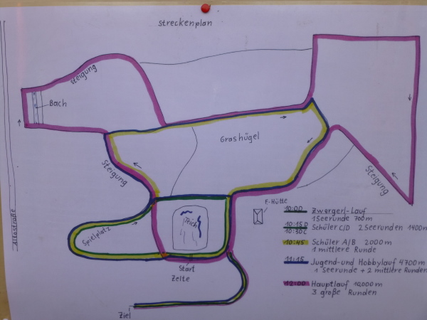Gut 3,3 km misst eine Runde, was, mit mathematischem Sachverstand hochgerechnet, bedeutet, dass deren drei zu laufen sind, um die 10 km voll zu machen. Wer viel schwitzt, sollte sich etwas zu trinken mitnehmen oder am Wegesrand deponieren. Denn unterwegs bleibt die Kehle ansonsten trocken. Was zu dieser Jahreszeit aber für kaum jemand ein Problem sein sollte.