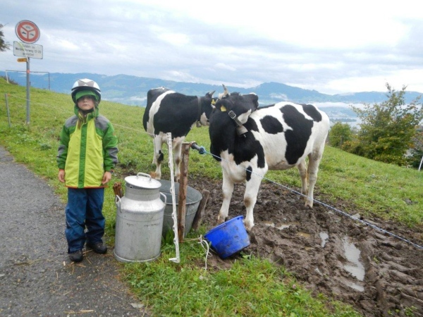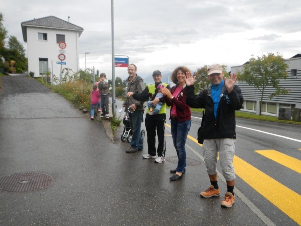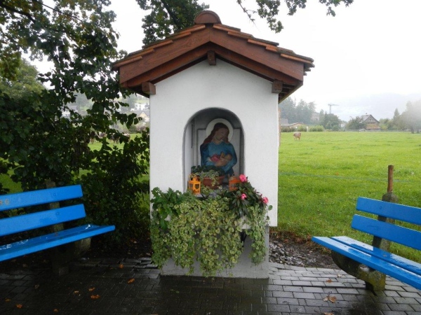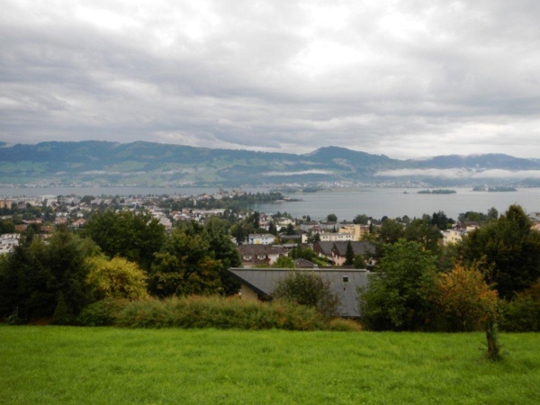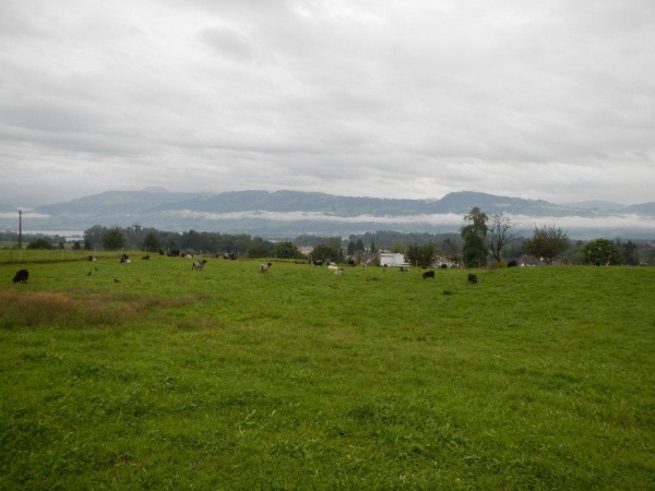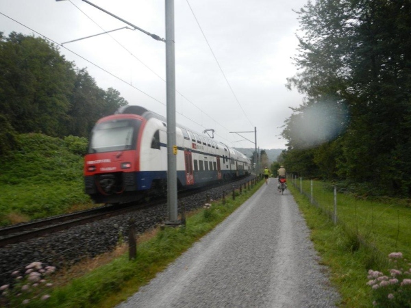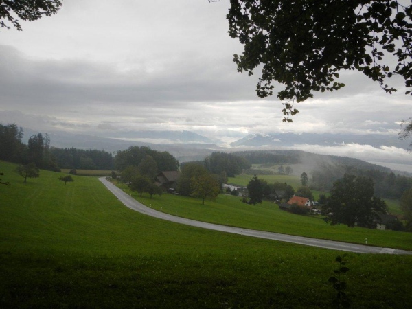 Mit der Zeit bin ich gut dran, noch habe ich kein Limit im Nacken und ausreichend Polster für späteres Nachlassen. So bestärkt und gestärkt nehme ich nach dieser längeren (23km) Etappe die nächste Welle in Angriff, während von oben immer noch die gleiche Welle am Nässen ist. Bis Schindellegi sind es nur 16 Kilometer. Diese überschaubare Distanz wartet dafür mit dem herzhaften Anstieg zum Etzel auf. Das müsste mir liegen.