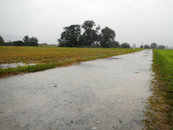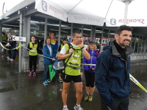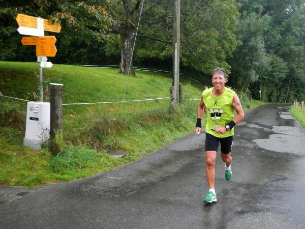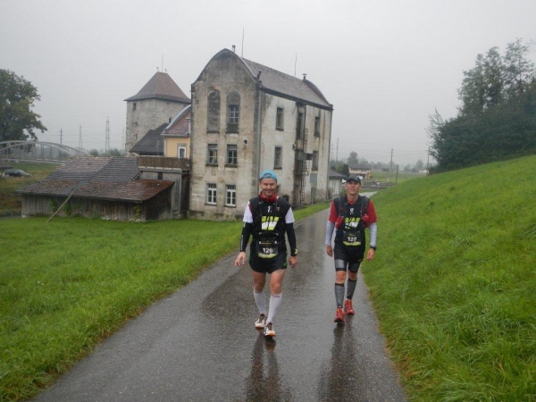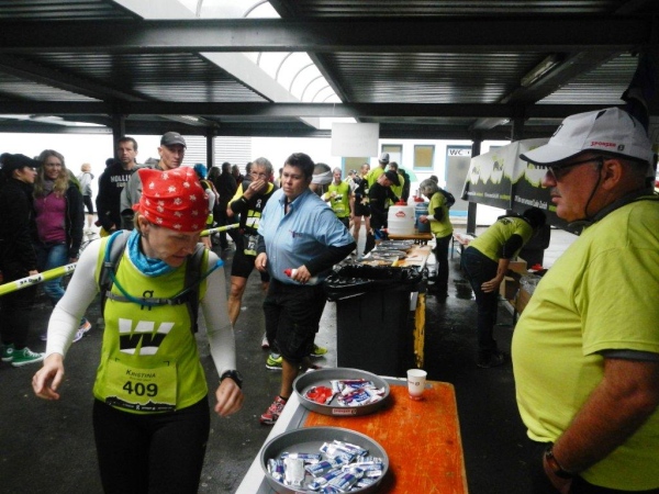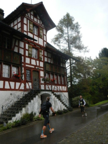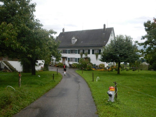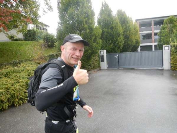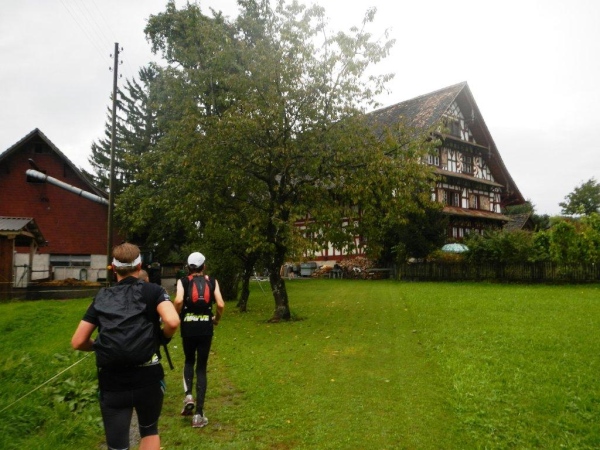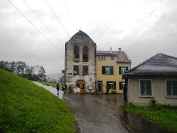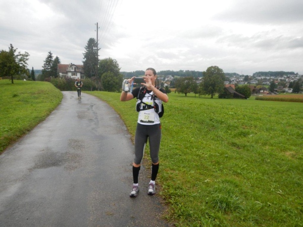 In Schindellegi ducken sich bei der Verpflegungs- und Wechselstation alle Leute unter die Vordächer. Haben die sich noch nicht daran gewöhnt, dass es seit Stunden regnet? Zugegeben, eine kleine Anpassung muss ich auch vornehmen. Ich trinke nur warme Bouillon und esse etwas Banane bevor ich vor weiterem Auskühlen weiterziehe.