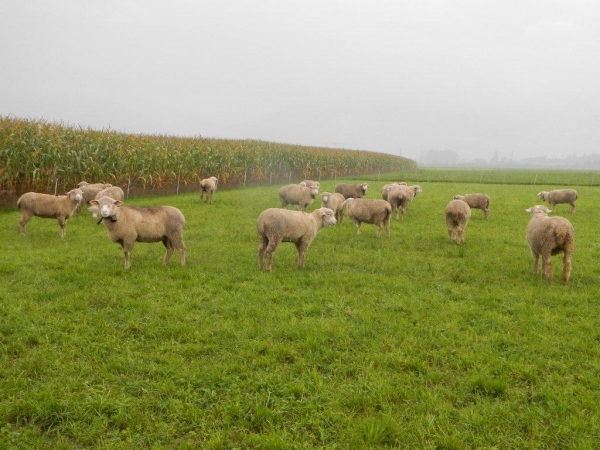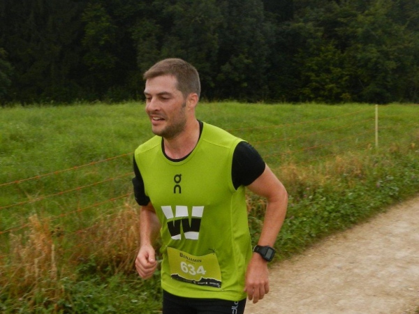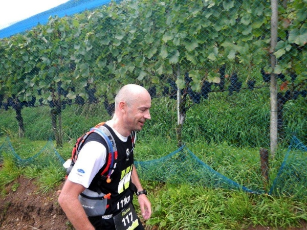 Die angebotene Massage auf dem Kulminationspunkt muss ich nicht in Anspruch nehmen, ich bleibe auch lieber in Bewegung, denn es auf 1100 Metern Höhe ist es doch gleich kühler. Zumal es – falls ich es noch nicht erwähnt haben sollte – regnet und regnet. Im Abstieg gibt es einen steilen Schlammpfad zwischen zwei mit Elektrozäunen gesicherten Weiden. Meine Überlebenstrainings auf ähnlichen Trailstrecken zahlen sich aus. Mir kann man auf diesem Weg keine Geständnisse entlocken.