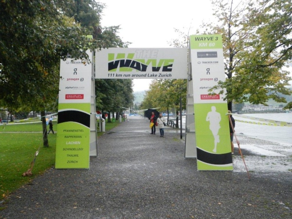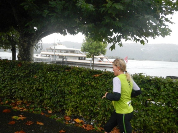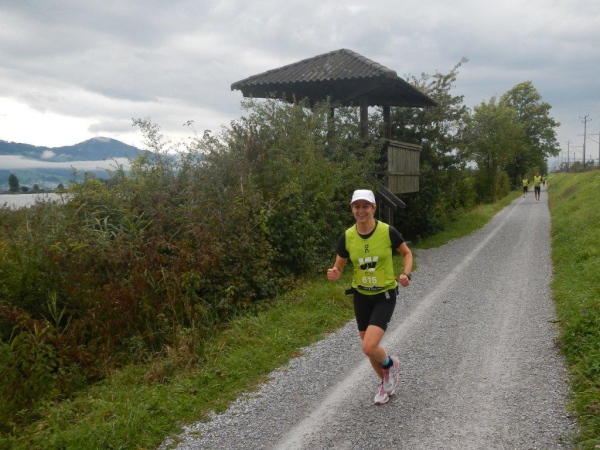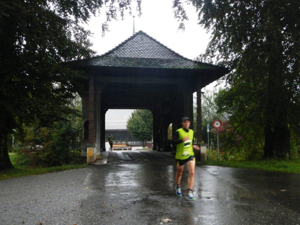 Ich fühle mich gerüstet für den nächsten Abschnitt und beschließe alleine loszutraben, obwohl ich es schätze, in einer kleinen Gruppe zu laufen. Die Distanz und das Zeitlimit lassen mich anders kalkulieren. Das lange, gerade Stück entlang des Obersees würde mir sicher kürzer erscheinen, wenn ich mich beim Laufen mit jemandem unterhalten könnte. Aber ich bin vorgewarnt und habe mich darauf eingestellt. Irgendwann auf diesem Abschnitt kommt die vorhergesagt Regenwelle. Es wird dunkel und die Topfen klatschen ganz ordentlich herunter. Spätestens in Schmerikon flutscht es in den Schuhen. Mit einem Membranschuh hätte ich diesen Moment herauszögern können, aber ob diese Wahl auf die Dauer des ganzen Laufs die bessere wäre, lasse ich dahingestellt.