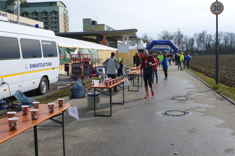 Alle 5km Labestellen (warmer Tee, Iso, Müsliriegel, Obst…), sehr gut!