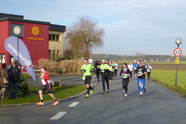 Leicht ansteigend geht es nun zurück, wieder beim Johannesbad, 11,1km. Kaum sind wir durch, kündigt der unterhaltsame Platzsprecher den Halbmarathonsieger an, Tobias Schreindl von der LG Passau siegt in 1:08:13