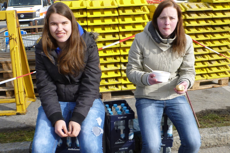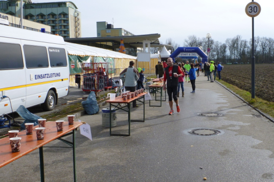 An dieser zweiten Labestelle gibt es warmen Tee und Iso, Wasser, Mandarinen Orangen, Äpfel, Balistos, wegen der Plusgrade heuer nicht gefroren.