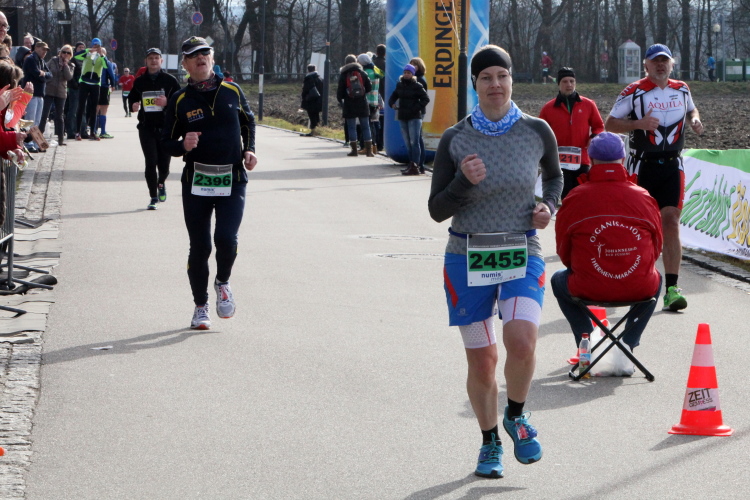 In Bad Füssing laufen Marathonis eine 10 und 11 km lange, flache, asphaltierte Runde jeweils zweimal, die Halben einmal und die 10er nur die 10km-Runde. Das hat den Vorteil, dass man praktisch 3mal an der erstklassig bestückten Hauptverpflegungsstelle bei Start und Ziel vorbeikommt, bevor man beim vierten Mal dann endgültig im Ziel ist. Bleibt vorzeitig die Motivation auf der Strecke, kann man bequem aussteigen oder von vorneherein einen 30er als langen Trainingslauf einplanen.