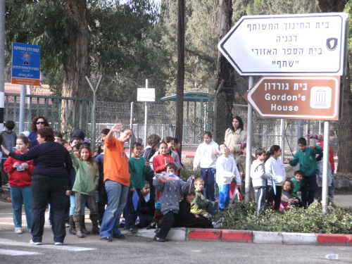 Vor KM 10 überquerten wir den Ausfluss des Jordans aus dem See Genezareth. An der Jordanbrücke standen einige Zuschauer und feuerten die Läufer an. Kurz später liefen wir an einer Schule vorbei. Die Schüler hatten gerade Pause und klatschten Beifall.