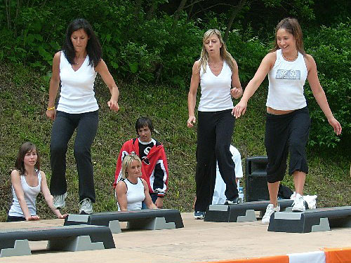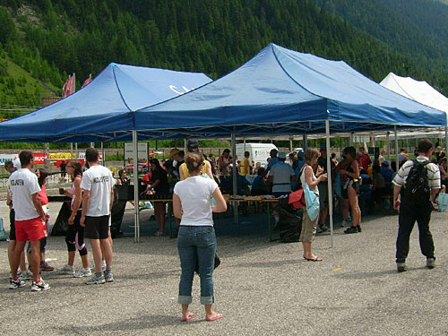 Auf dem Startplatz, der sich am südlichen Ortsausgang auf einer asphaltierten Fläche befindet, zeigen einige Jungs und Mädels ihre Tanzdarbietungen bei lauter und fetziger Musik. Der Veranstalter hat Getränke und etwas zum Beißen parat gestellt. WCs sind in italienischer Ausführung (Zielen bei der Geschäftserledigung notwendig!) vorhanden, auch wenn sich mitunter eine Warteschlage bildet. Ich setze mich in den Schatten, es ist mollig warm und auch schwül, auch können einige Wolken erste Tropfen nicht mehr halten.