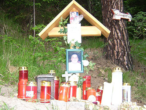 Später nimmt das Gefälle wieder zu. Kurve an Kurve reiht sich aneinander. Ein Plakat mahnt hauptsächlich die Motorradfahrer mit „Gib Deinem Schutzengel eine Chance!“ an eine defensive Fahrweise gerade in diesem Bereich. Ein paar Ecken weiter sehe ich dann noch auf der Straße Markierungen in leuchtendem Gelb, die sich der zwei Meter hohen Steinwand nähern. An der Fortsetzung der Linie sehe ich dann zwei Kreuz nebeneinander. Zwei junge Verkehrsteilnehmer haben an dieser Stelle ihr Leben verloren.