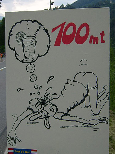 Die Anreise geschieht am Morgen des Wettkampfes über München, Garmisch-Partenkirchen und Mittenwald. Beim Runterfahren des Zirler Berges, ein kilometerlanges Gefälle mit bis zu 16 Prozent, riecht es verdächtig nach Bremsgummi, ich hoffe, dass es ein ortstypischer Geruch auf diesem Straßenteil ist und dass dies nicht von meinem Auto herstammt. Im Radio hören wir Rückblenden auf das Sommermärchen 2006, die Fussballweltmeisterschaft in unserem Lande. Nun ja, in einem Jahr kann sich Österreich und Schweiz darauf einstellen, denn dann ist wieder Prime Time fürs runde Leder. 2008 wird der Europameister ausgespielt.