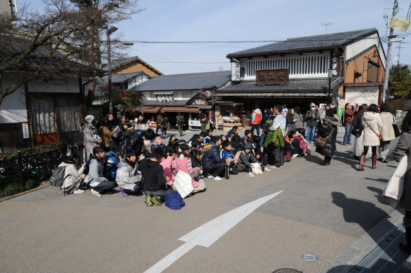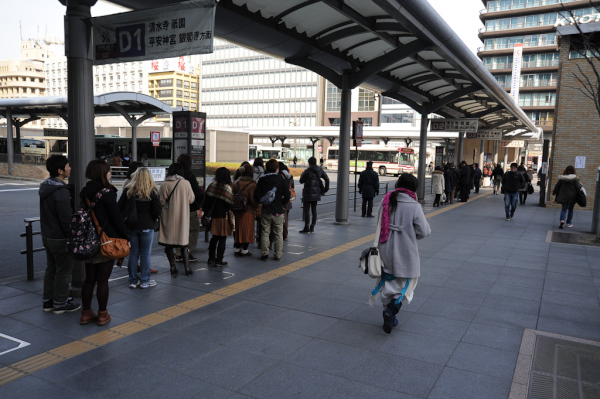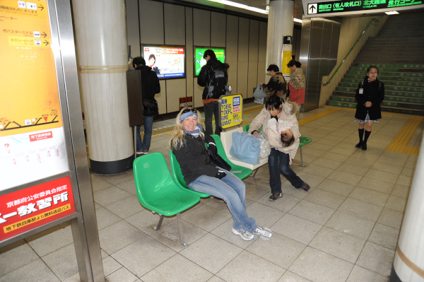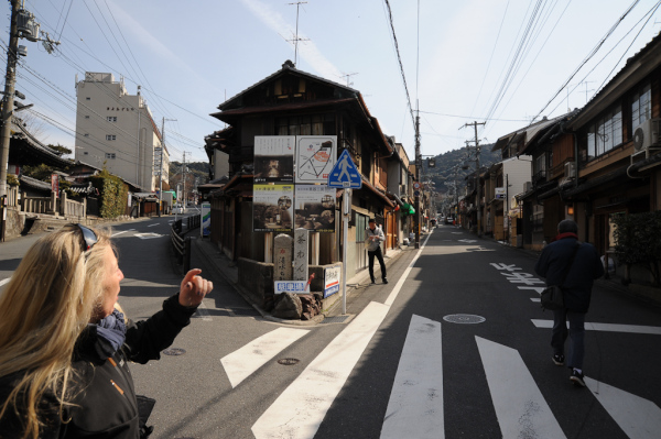 Our train arrives at its destination in the old imperial city Kyōto. The sun is shining and a brisk and cold wind greets us.