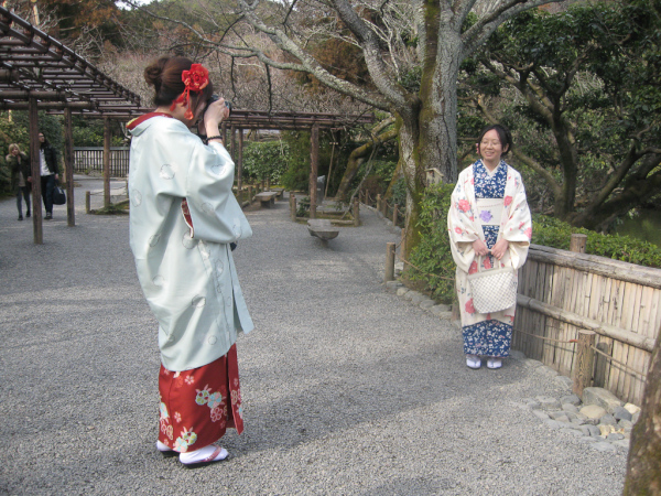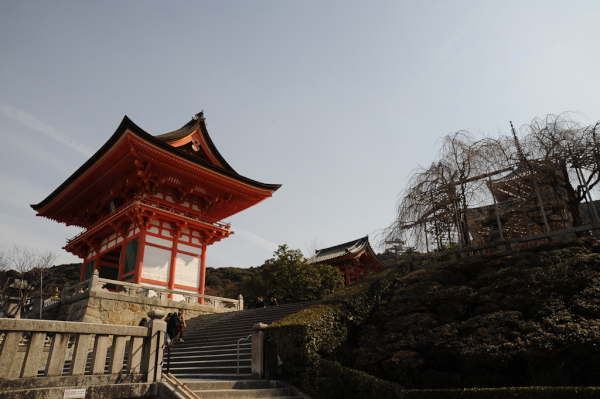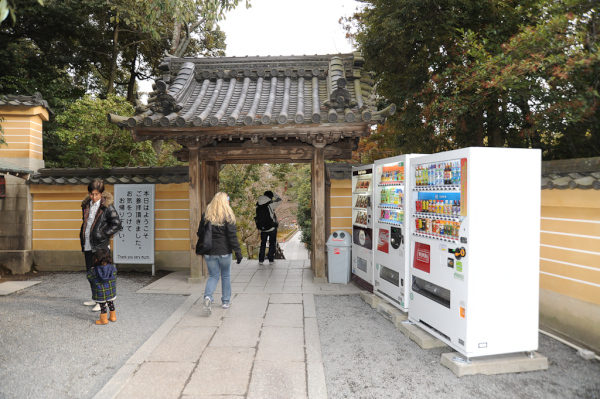 We are firmly pressed against our seats as the train accelerates like an airplane. The “flying” train lays like a motorbike into the turns. I fantasize that the high-tech future is beamed into the glorified past, from the 21st Century into the Kyōto of 794. Over a thousand years ago, Kyōto was the capital of Japan, and the residence of the emperor. In my imagination I see geishas, temples and monks.