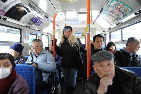 The countryside flies past. I can see to my left, the Pacific and to my right, the Japanese Alps. We are served coffee. In coach number 14, we are almost alone other than a man, of course, in a pin-stripe suit, working on his laptop. For him it’s a daily trip. For us it’s a journey into another world.