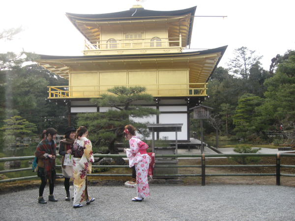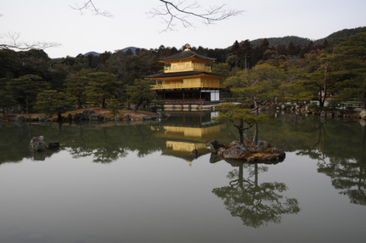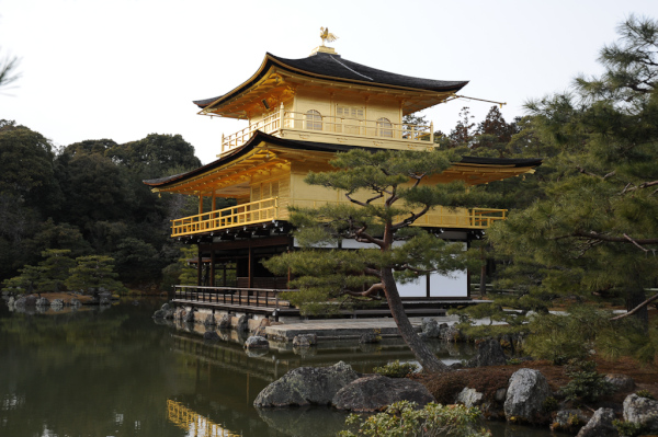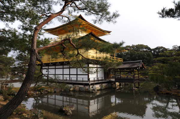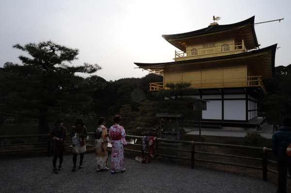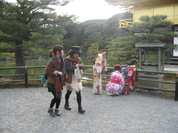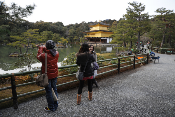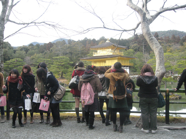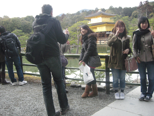 There it is, the Kinkaku-ji temple, even if it is only a reconstruction. Back in 1950 an arsonist destroyed this temple leaving only ashes as a reminder of what used to be. Click, click, click! Minolta, Nikon, Panasonic, Canon, and of course iPhone. There is no better known photo motive.