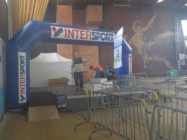 Der Abstieg ist alles andere als einfach. Immer wieder hangele ich mich von Baum zu Baum, von Strauch zu Strauch. Endlich auf der Straße, die ins Ziel führt, muss ich erstmal kräftig durchatmen und kann mich freuen, diesen Abstieg ohne Sturz überstanden zu haben. Der Zieleinlauf ist in der Sporthalle der Schule, wo man mit dem Abbau Tische und Bänke beginnt.