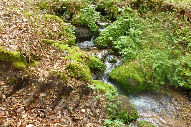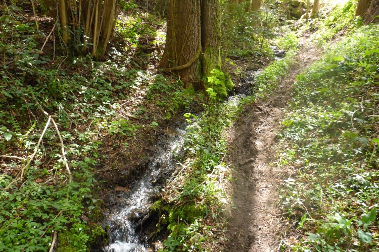 Zwischendurch bieten mal breitere Wege Gelegenheit zur Entspannung. Wieder werden wir auf einem Schild auf die Möglichkeit hingewiesen, an einer Quelle unsere Wasserflasche aufzufüllen, was auch ich nutze. Ich glaube zwar, dass ich nun bald am Ziel bin, brauche dann aber für die letzten Kilometer doch länger als erwartet. Eigentlich ist diese Strecke sehr gut auch zum schnelleren Laufen geeignet, doch so ganz ohne Zeitdruck habe ich es heute nicht mehr eilig.
