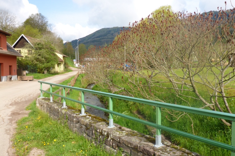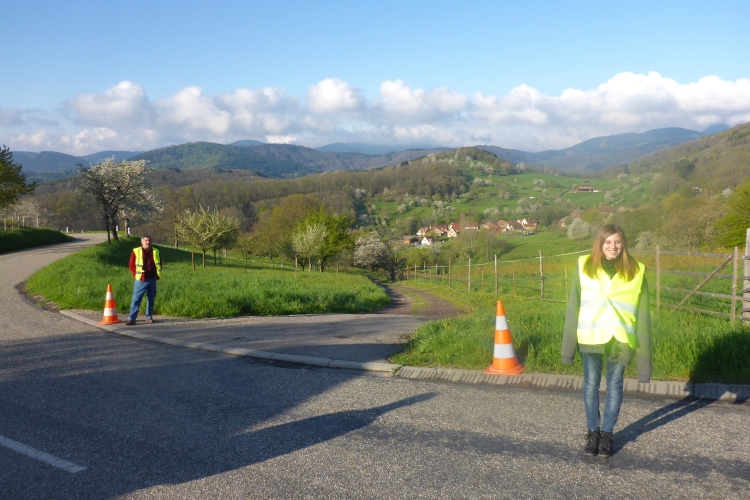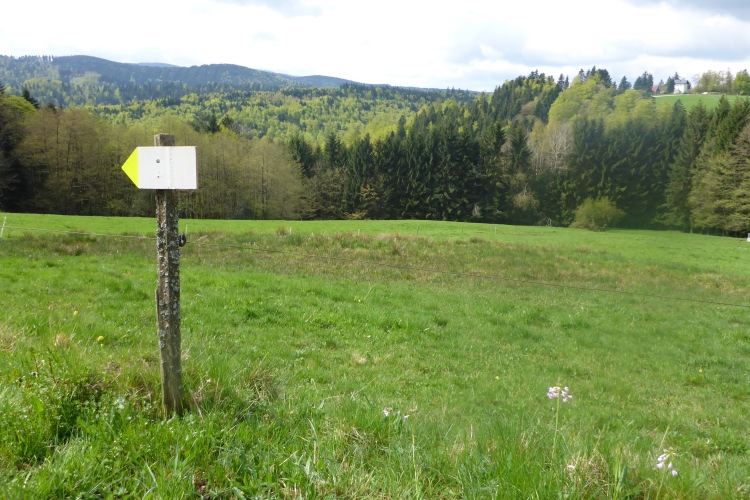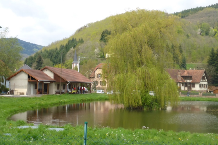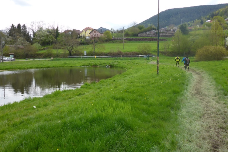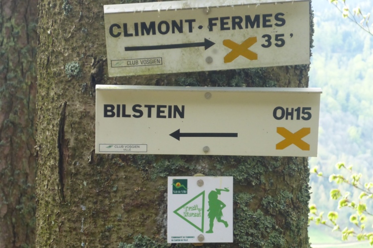 Einen Augenblick lang kommt es mir vor, als hätte ich ein Deja Vu. Vor mir zeigt ein Wegweiser, dass ich nur 15 Minuten vom Bilstein entfernt bin. Quatsch, der BiMa war letzte Woche! Hier trägt eine Burg diesen Namen, die wir aber auf unserer Strecke nicht sehen werden. Die dritte und letzte Verpflegungsstelle ist neben einem kleinen Teich in Lalaye. Ich habe noch drei Stunden Zeit bis zum Zielschluss und weiß, dass ich es nun langsamer angehen kann.