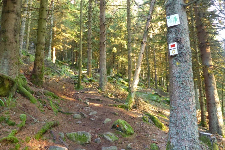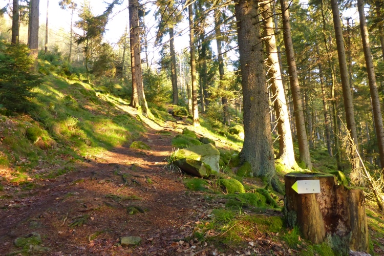 Meine hohen Erwartungen an Trailläufe in den Vogesen werden auch heute nicht enttäuscht. Auf vielen schönen Pfaden steige ich schnell bergauf. Genau so will ich es haben! Die Sonne scheint vom herrlich blauen Himmel. Je höher ich komme, desto schöner sind die Trails. Welch ein Spaß, hier zu laufen! Obwohl laufen bei meinem Aufstiegstempo eindeutig das falsche Wort ist. Trailwandern, das passt eher.