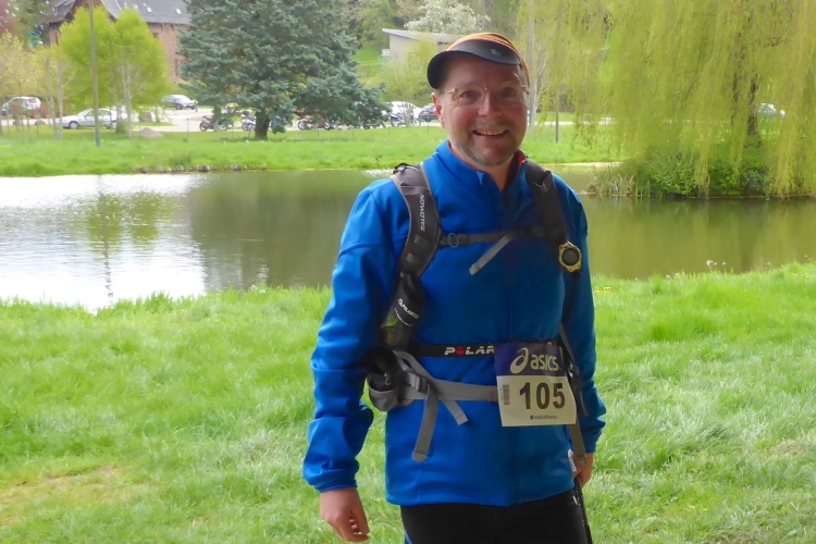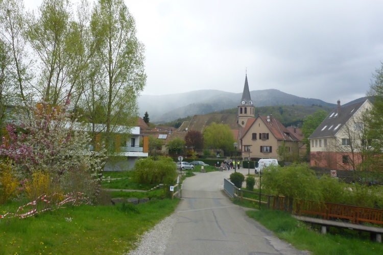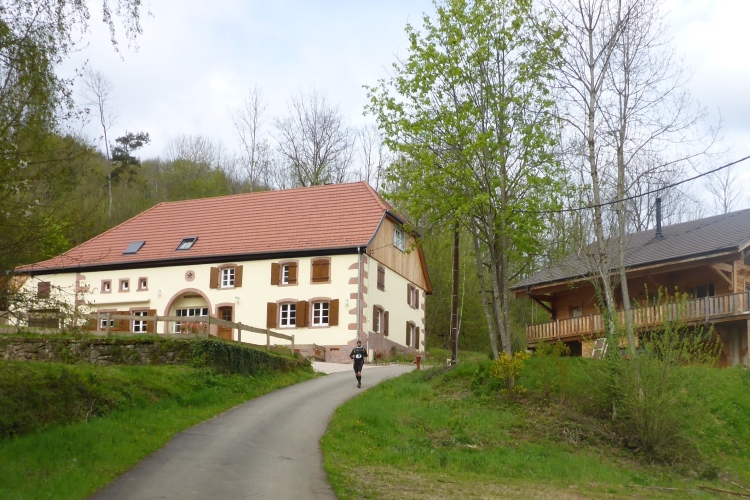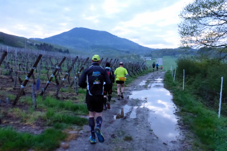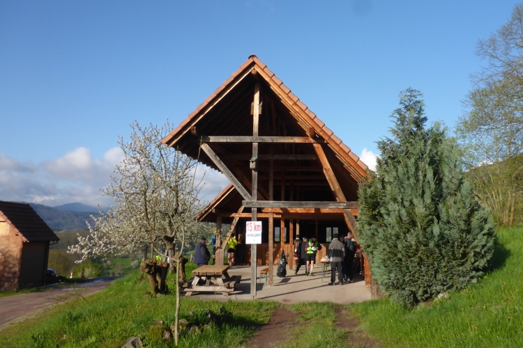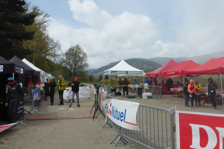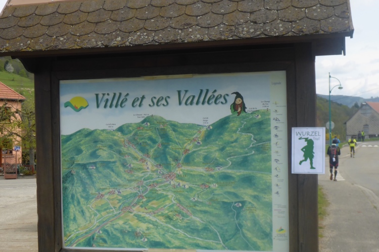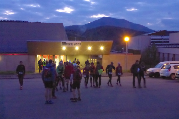Auf der A5 fährt man bis Offenburg, von dort sind es nur noch 65 km bis Villé-Bas-Rhin, meist auf Autobahn. Ich hätte durchaus etwas länger schlafen können, denn als ich eine Stunde vor Start im Sportzentrum ankomme, sind außer mir erst fünf Läufer dort. Nachmelden kann man sich problemlos, da auf der 52 km /2300 Höhenmeter Strecke noch deutlich mehr Teilnehmer Platz hätten. Für die Langdistanz gibt es am Schluss 97 Finisher (und nur 1 DNF!) Die später startende 24 km Mitteldistanz mit 317 Finishern und die 12 km Kurzdistanz mit 222 Finishern sind stärker frequentiert.