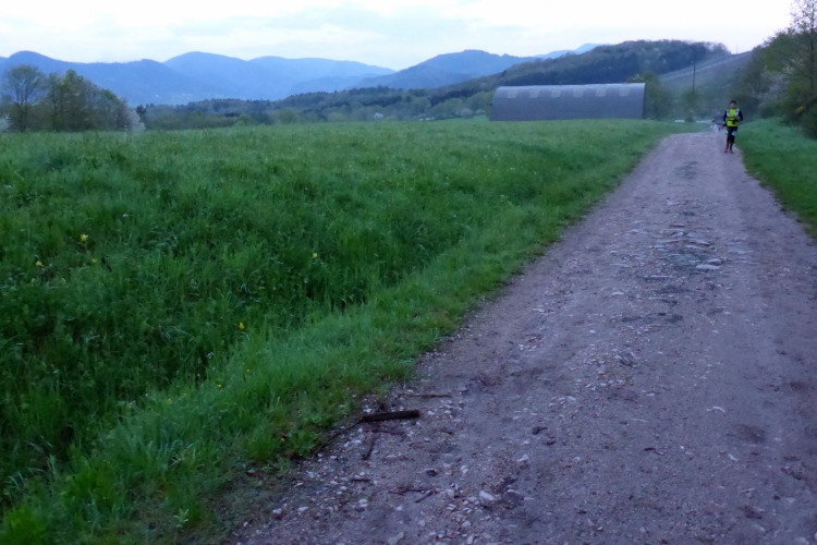 Inzwischen ist hinter den Bergen die Sonne aufgegangen. Noch sehen wir sie nicht, aber es wird heller. Anfangs umgeben mich vor allem Obstbaumwiesen, dann geht es auf schönen Trails in den Wald hinein. Mal marschierend, mal laufend gewinne ich schnell an Höhe. So früh am Morgen fasziniert mich immer das Vogelkonzert in den Wäldern. Auch heute zwitschert es rund um mich herum sehr vielstimmig. Welch herrlicher Sound! Nicht HiFi-Stereo, nicht Dolby-Surround, das ist Natur pur! Schon alleine deswegen lohnt es sich, morgens früh aufzustehen. Ich höre heute zwar auf der gesamten Strecke Vögel, aber um diese Zeit sind sie besonders aktiv.
