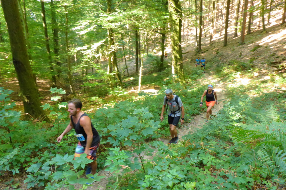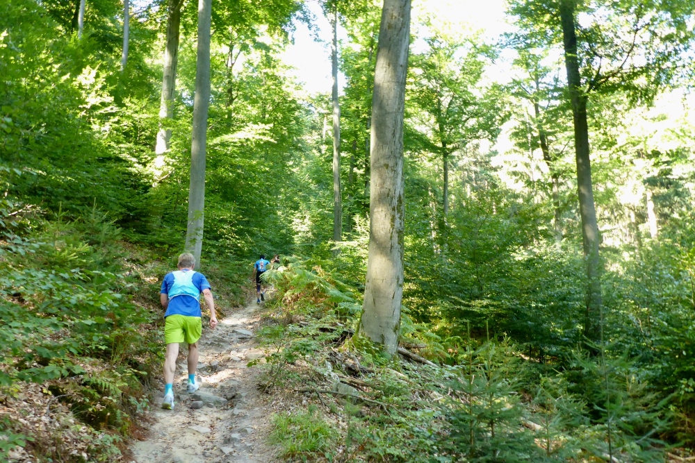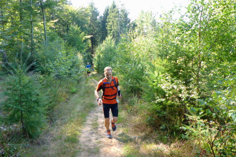Nun folgt das erste richtige Trailstück des Tages. Während der nächsten Stunde geht es meist mit moderatem Gefälle bzw. Steigung auf mal schmalen, mal breiteren Trails hinauf und hinab. Zwischendurch bieten auch ein paar breitere Wege etwas Erholung für die Läufer.