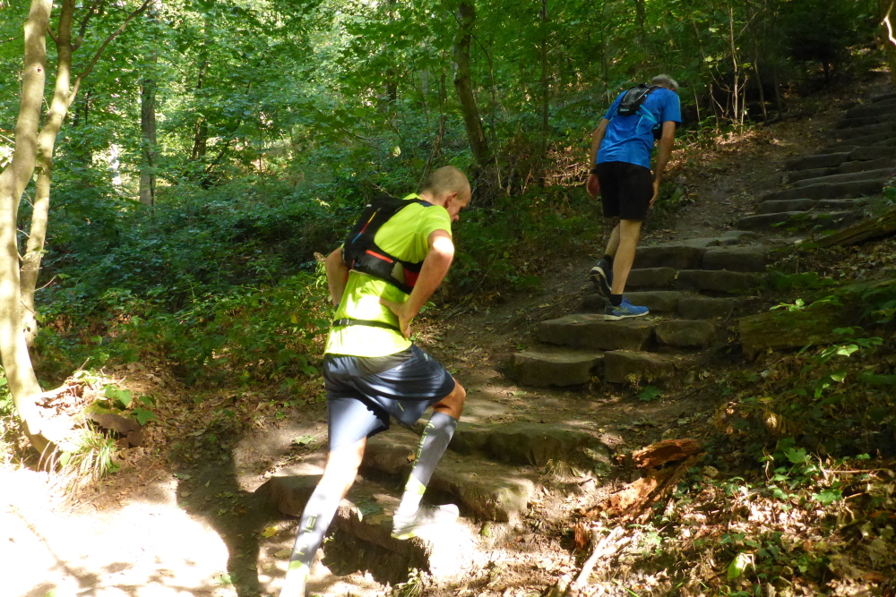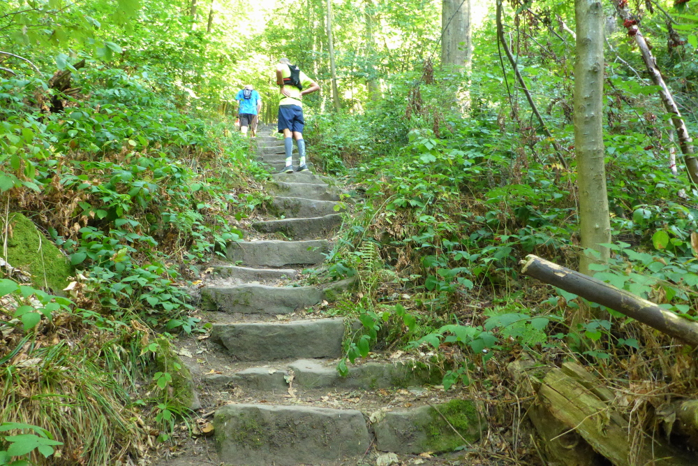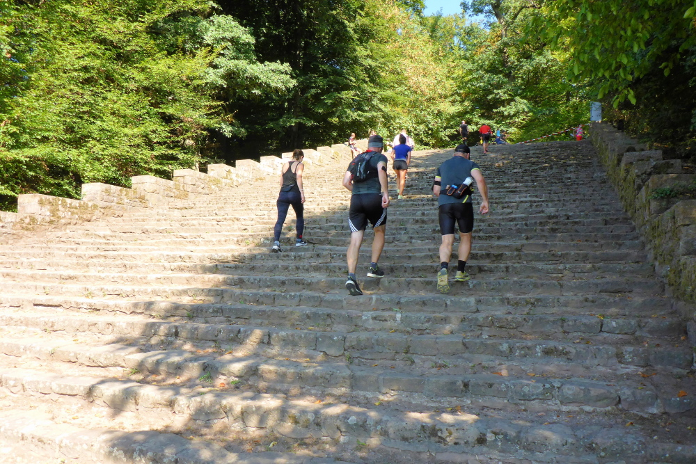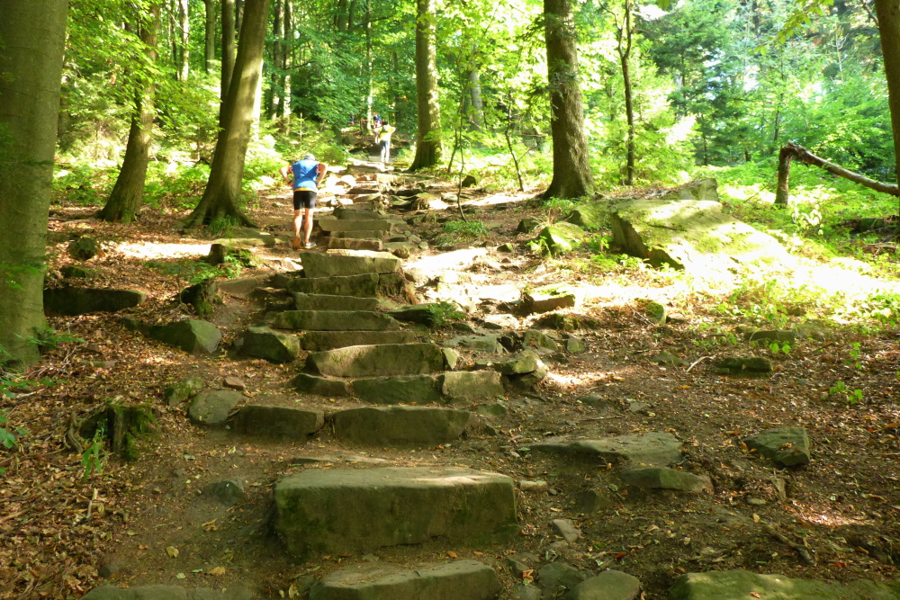 Heidelberg bietet eine angenehme Mischung von normalen Wanderwegen, kurzen Asphaltstrecken und vor allem vielen technisch nicht allzu schweren Trails, auf denen erfahrene Trailrunner schnell laufen können und Einsteiger erste Erfahrungen im Trailrunning sammeln, ohne überfordert zu werden. Und mit der Himmelsleiter steht gegen Ende ein brutal steiles, aber wunderschönes Schmankerl im Programm.