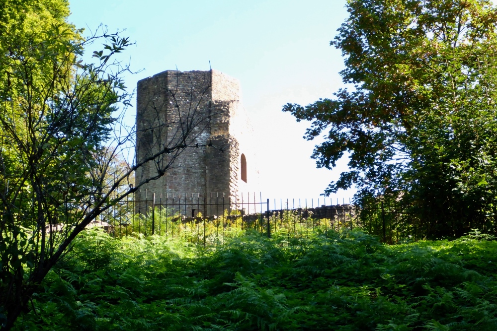 Fast direkt oberhalb der Thingstätte steht auf dem Gipfel des Heiligenbergs die Ruine des Michaelklosters. Das umzäunte Gelände kann zwar von Wanderern kostenlos betreten werden, wir Läufer müssen es aber immer außerhalb des Zaunes komplett umrunden und sehen nur ein Stück vom Turm der frühromanischen Kirche.