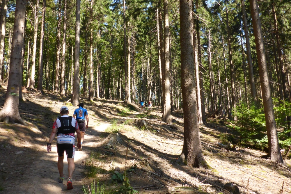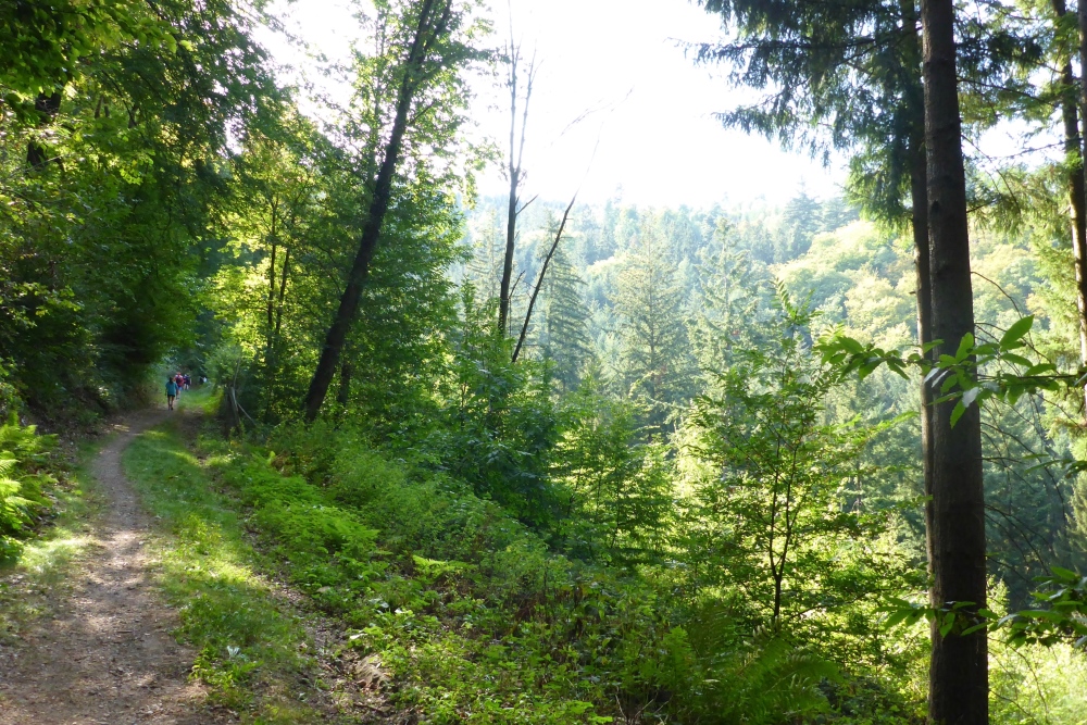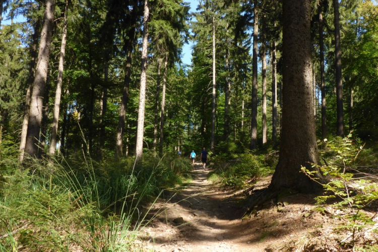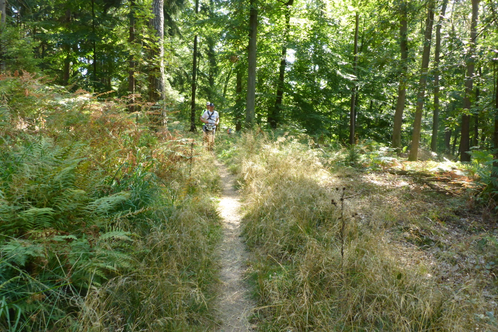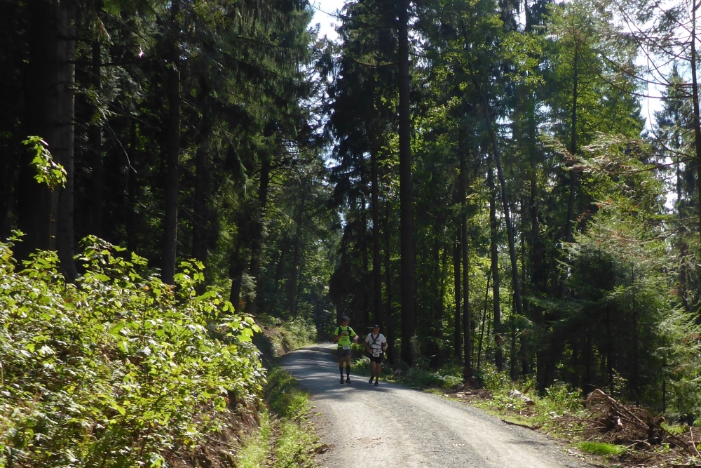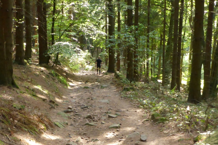 Kurz geht es etwas steil bergauf, dann folgen wieder längere, recht flache Auf- und Abstiege, mal auf breiten Wegen, mal auf leichten Trails. Ich genieße es, nun völlig ohne Zeitdruck laufen oder marschieren zu können.
