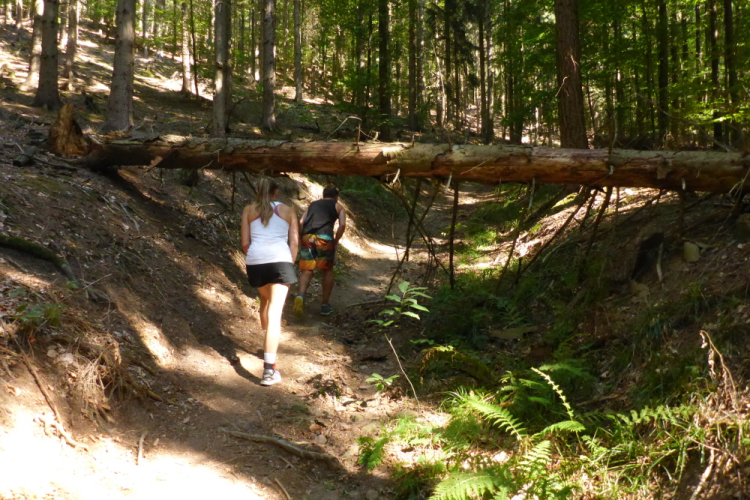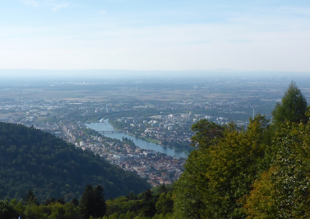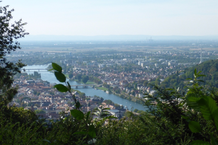 Vom Philosophenweg aus genießt man die schönsten Postkartenblicke auf Heidelberg. Beim heutigen Traumwetter wahrhaft eine Strecke wie auf Kitsch-Fotos. Bald liegt der Asphalt hinter uns und wir marschieren auf Waldwegen bergauf. Bei diesem herrlichen Spätsommerwetter ist das perfekt.