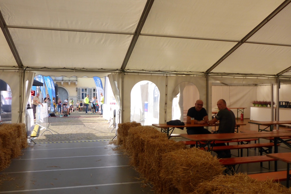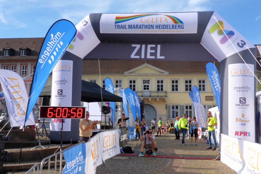 Leider müssen wir dieses Mal oberhalb vorbei laufen statt hinunter in den Schlossgarten. Auf einer Straße laufe ich in mehreren Serpentinen abwärts zur Altstadt. Am Karlsplatz geht es durch ein Zelt, dann erreiche ich das Ziel nach wenigen Sekunden über 6 Stunden. Ich hätte es problemlos auch ein paar Minuten schneller geschafft, doch wozu?