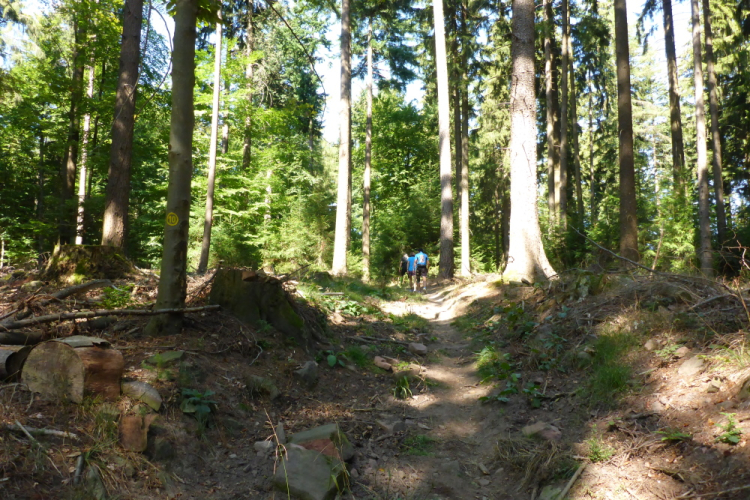 Die Trails bergab machen mir wie gewohnt Spaß, der kurze Zwischenaufstieg schreckt mich nicht mehr, denn ich kenne die Strecke mittlerweile fast auswendig. Am Hotel Molkenkur vorbei, über die Bergbahntrasse, dann erreiche ich bald das Schloss.