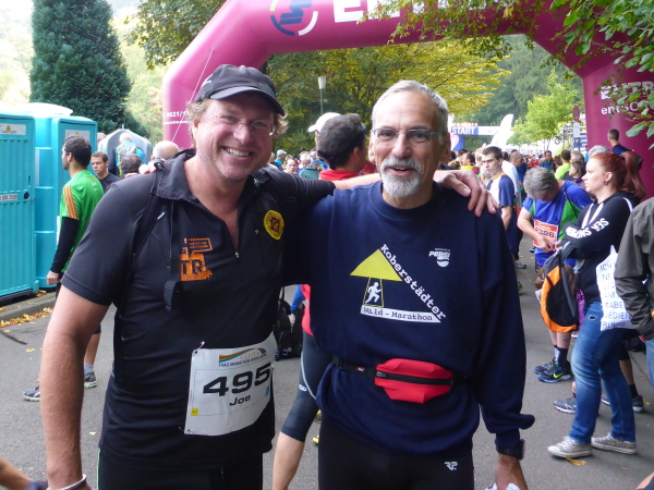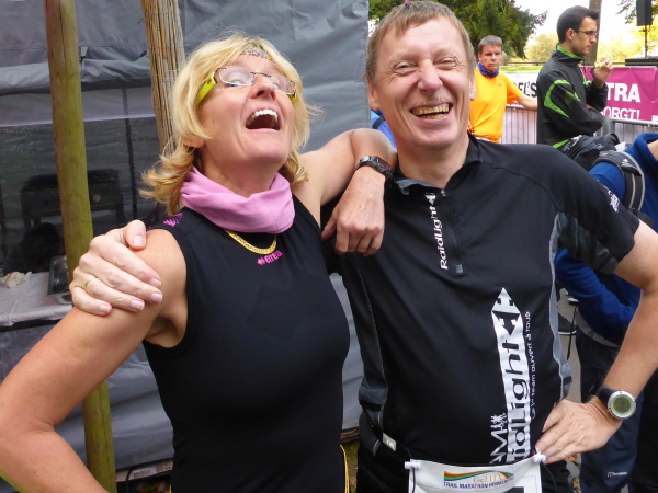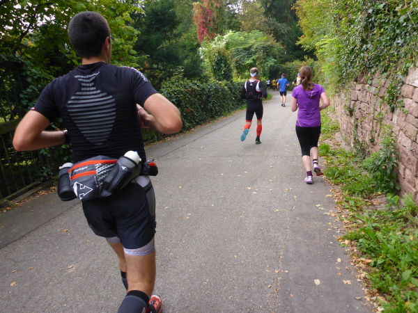 42,2 km, 1500 Hm (stark untertrieben). Die Startblöcke werden zeitversetzt auf die Strecke geschickt, was bewirkt, dass die bald wimmernden Läufer mein Lachen nicht mehr hören können, aber bestimmt mißmutig an Trailrunningkollege Bernie denken. Denn der hat sich bei der letztjährigen, erstmaligen Austragung beschwert, es hätte zuwenige Trailpassagen gegeben. Danke, Bernie! Vielen Dank, vielen Dank, Du Trailhund! Auch wenn die Orga aus Mannheim kommt, die können lesen! Nicht nur das, die können auch die Strecke verbessern, und das bis zur Perfektion.