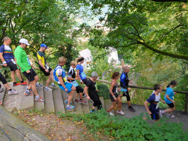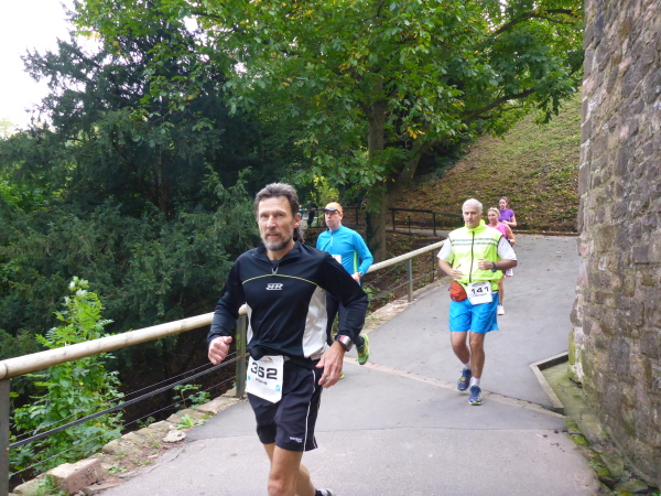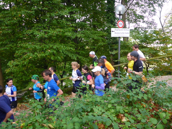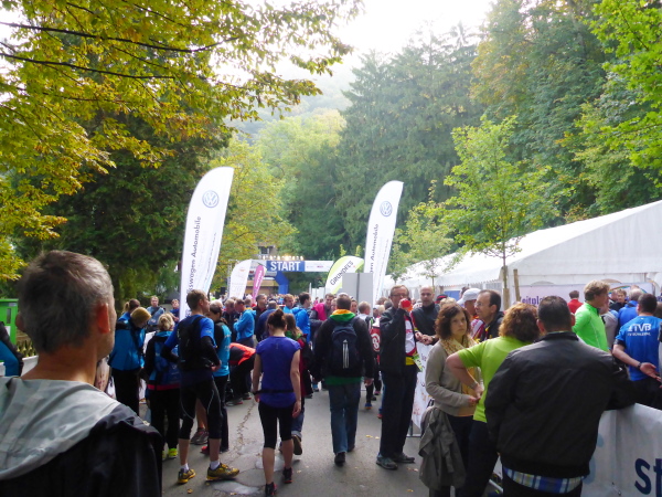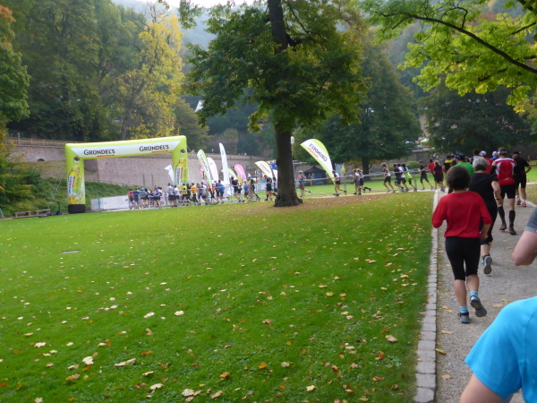 Anfahrt: Ein Philosoph meidet das Auto, Großraumticket ist im Startgeld enthalten, die Bergbahn, hinauf zum Schloss kostet 1 Euro. Der wahre, gute, edle Läufer, also ich, geht zu Fuß, kommt schweissgebadet dort oben an und vergisst die Telefonnummer für den Notfall auf die Rückseite der Startnummer zu schreiben. Mein Bewährungshelfer hat eh keine Ahnung von seinem Nordmende-Handy.